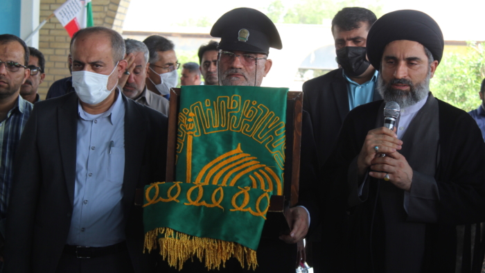 مراسم استقبال از خادمین و پرچم مطهر حرم مقدس رضوی با حضور مسئولین و مردم هندیجان در گلزار شهدای هندیجان شمالی برگزار شد .